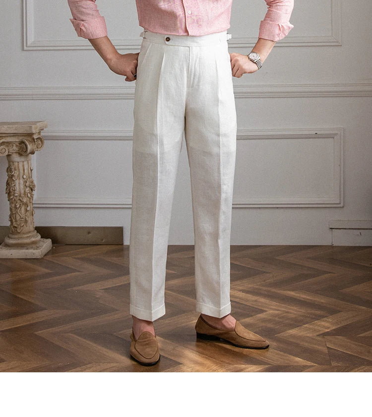 Inspired by the timeless elegance of Italian tailoring, our Side Adjuster Trousers are the epitome of refined comfort and clean silhouette. Expertly cut from premium fabric and finished with traditional side tab adjusters, these trousers eliminate the need for a belt—offering a sleeker, more elevated look.